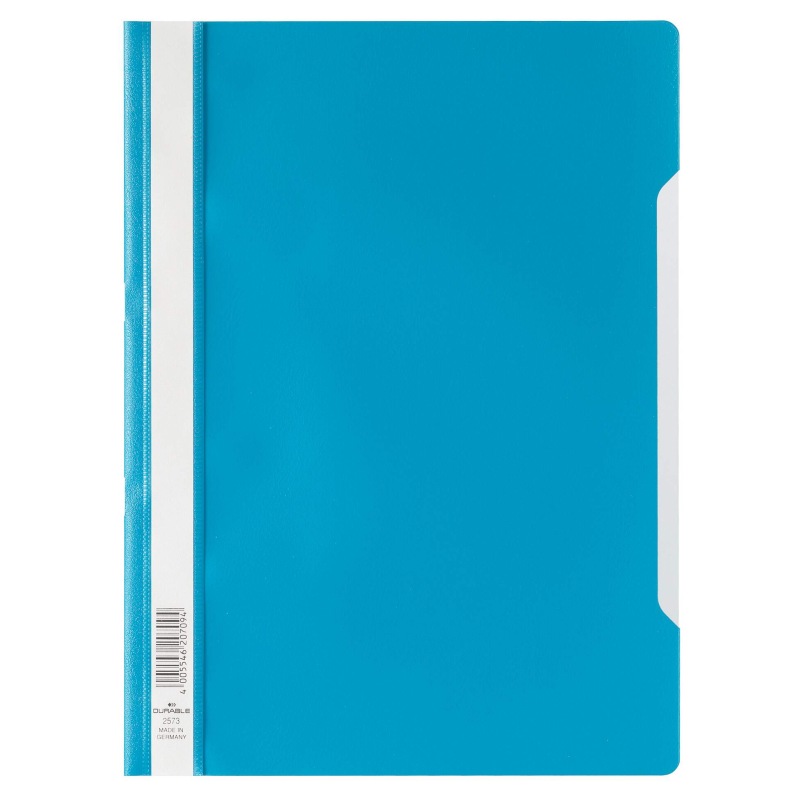 Durable tilbudsmapper er den ideelle løsning for virksomheder, institutioner og offentlige organisationer, der ønsker en funktionel og professionel måde at præsentere og opbevare dokumenter på. Den gennemsigtige forside viser titelsiden på rapporter, tilbud eller præsentationer, mens den farvede bagside skaber et stilrent og organiseret udtryk. Mapperne er fremstillet i slidstærkt, kopisikkert polypropylen, der beskytter dokumenterne mod sollys og tåler daglig brug i travle miljøer.