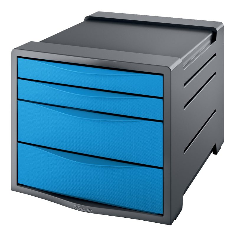 Esselte skuffekabinet A4 Vivida - 4 skuffer - Grå med blå skuffer