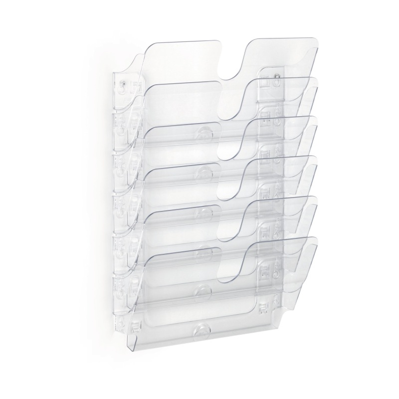 Hvert rum har en kapacitet på 23 mm, og holderen kan udvides til en bæreevne på op til ca. 6 kg, hvilket sikrer stabil opbevaring af større mængder tryksager. Den lodrette, pladsbesparende konstruktion gør denne brochureholder til væg ideel til receptioner, venteværelser, udstillingslokaler og messestande, hvor synlighed og nem adgang er afgørende.