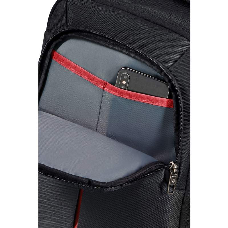 Yderligere funktioner omfatter et rummeligt hovedrum, en lettilgængelig frontlomme og sidelommer til vandflasker. GUARDIT 3.0 er vandafvisende takket være sit genanvendt polyester og har et moderniseret look med røde kontrastfarver på en sort bund.
