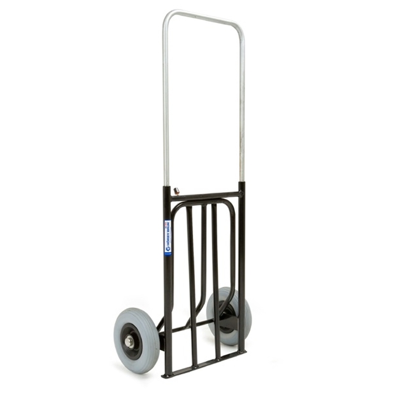 Vogn til allround anvendelse i de fleste miljøer. Håndtaget og lastpladen kan slås ind for at give pladsbesparende opbevaring. Med punkteringsfri hjul.