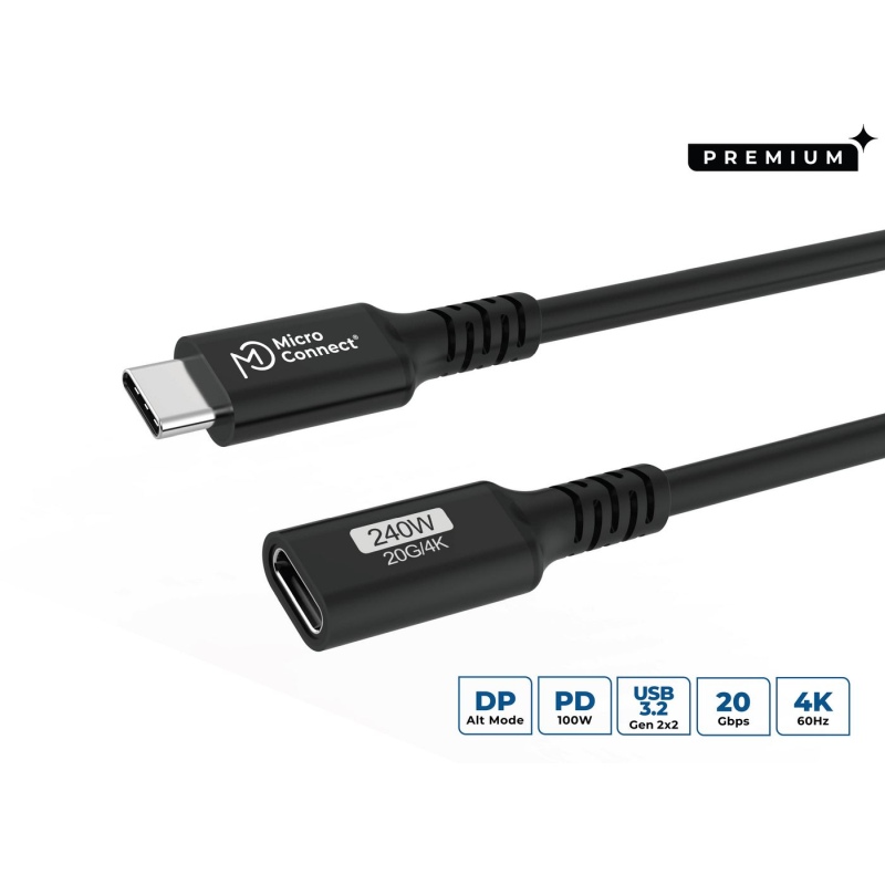 MicroConnect USB kabel - Premium USB-C cable Extender - 0.5m 20Gbps - 240W - USB 3.2