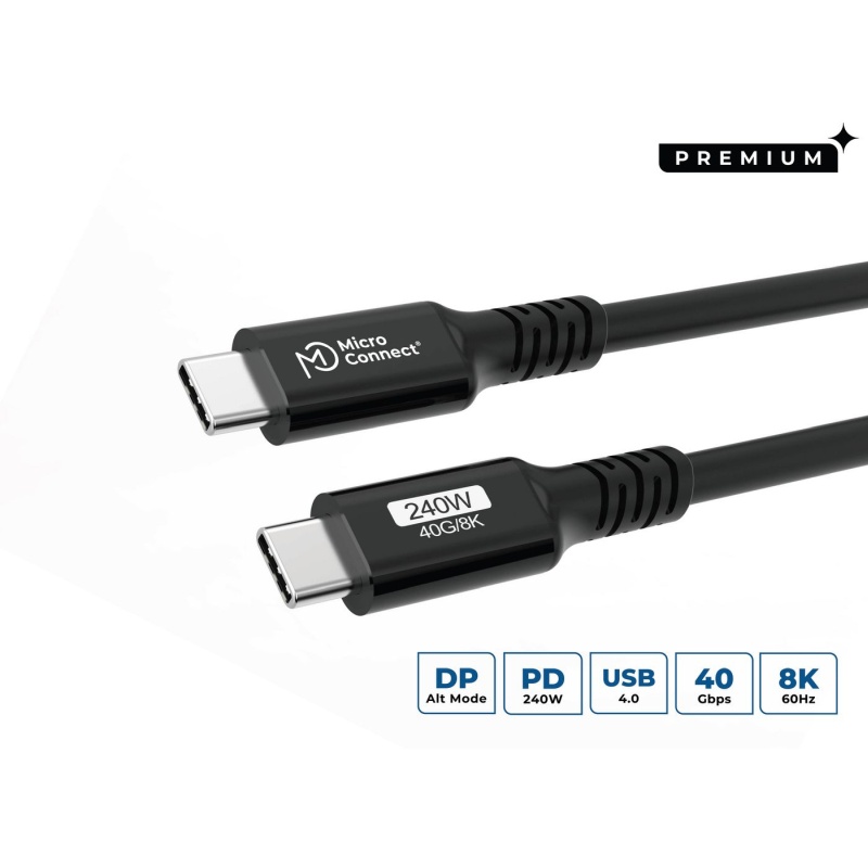 MicroConnect USB kabel - USB-C to USB-C cable 3m - Premium - 240W - 40Gbps - USB4