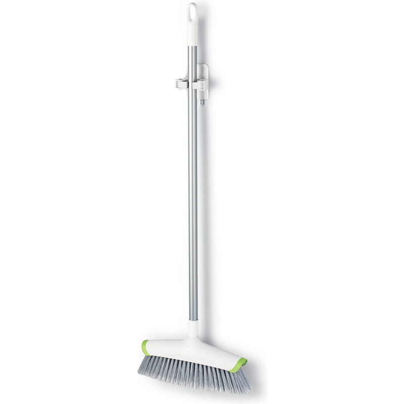 Den hvide holder er fremstillet i plast l, måler 85 mm i længden og 79 mm i bredden og kan bære op til 1,8 kg. Pakken indeholder 1 kosteholder og 2 stærke strips, og er ideel til indendørs brug i bryggers, køkken, rengøringsrum eller kontormiljøer.