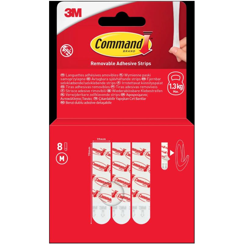3M Command refill strips – 8 stk. strips til mellem kroge er den ideelle løsning til hurtigt og skadefrit plakat ophæng med mellemstore kroge. Disse selvklæbende strips fungerer som et effektivt alternativ til dobbeltklæbende tape, tegnestifter og elefantsnot og kræver hverken søm eller værktøj.