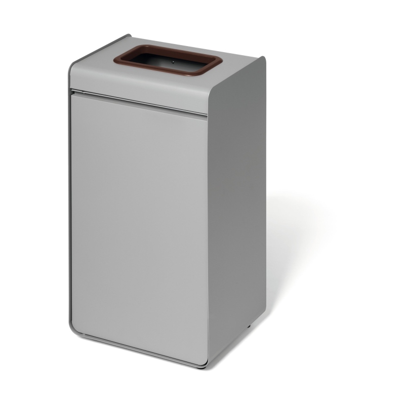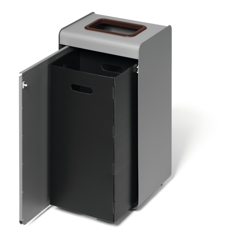 Denne sorteringsskraldespand er fremstillet i robust, pulverlakeret metal med en aftagelig indvendig plastbeholder, som gør tømning og rengøring hurtig og hygiejnisk. Den har en brun indkaståbning og tydeligt piktogram på forsiden, så du nemt kan adskille affaldstyper som papir, plast, glas eller restaffald.