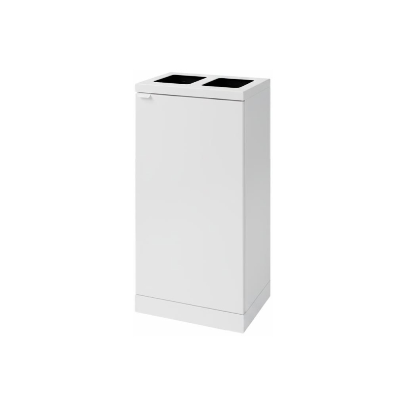 Med sit enkle og moderne udtryk passer sorterings skraldespanden naturligt ind i professionelle miljøer som kontorer, kantiner og produktionsområder.