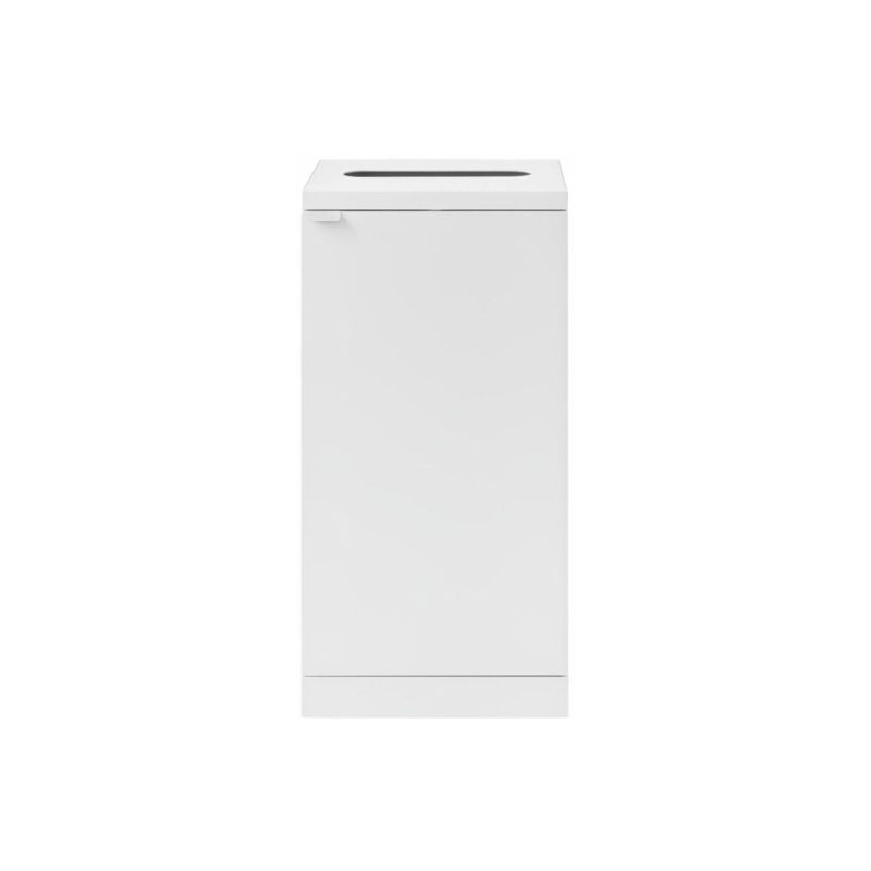Affaldsbeholderen er udstyret med en stærk og integreret poseholder, der holder affaldsposen på plads og samtidig skjuler den for et stilrent udseende. Skjulte fødder og hængsler giver et elegant og minimalistisk look, mens de justerbare fødder bag soklen gør det muligt at tilpasse højden efter behov. For at sikre høj hygiejne og minimal vedligeholdelse er affaldsbeholderen fremstillet i pulverlakeret stål, hvilket gør den både holdbar og nem at rengøre. Den enkle og elegante design gør, at affaldsbeholderen kan integreres naturligt i enhver indretning, og den langvarige kvalitet sikrer, at du får et produkt, der holder i mange år.