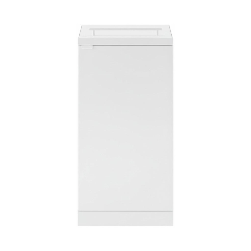 Beholderen har en frontdør med soft close-funktion, som gør tømning nem og ergonomisk korrekt uden behov for tunge løft. Den integrerede poseholder holder affaldsposen sikkert på plads og sikrer, at den ikke glider ned under brug.