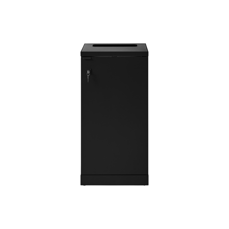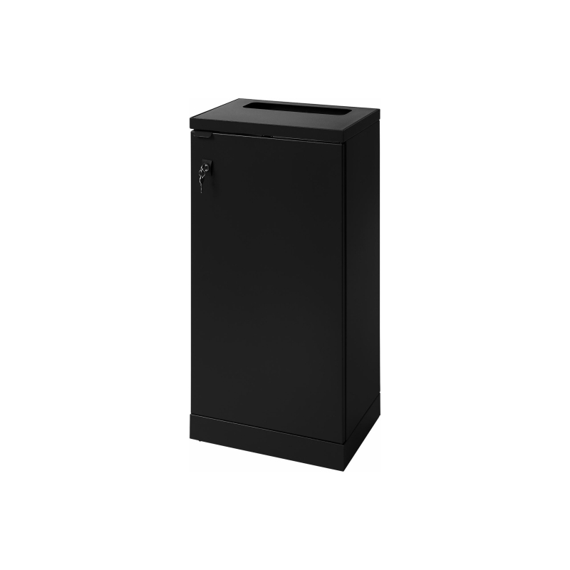 Det åbne indkast gør sorteringen enkel, mens beholderens konstruktion i pulverlakeret stål sikrer et ensartet og professionelt look. En stærk, integreret poseholder holder posen sikkert fast, så den ikke glider ned, selv når beholderen er næsten fyldt.