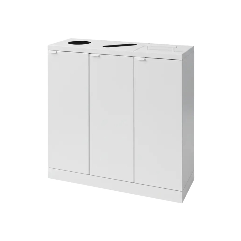 Bica Model 875 er den perfekte løsning til affaldssortering på arbejdspladsen. Dette elegante affaldssystem med 3 inddelinger tilbyder et stilrent design og funktionalitet, der hjælper din virksomhed med effektiv affaldssortering. Med en kapacitet på 3x65 liter og en kombination af løftelåg og formede indkast, er det ideelt til at sortere både papir, plast og madaffald.