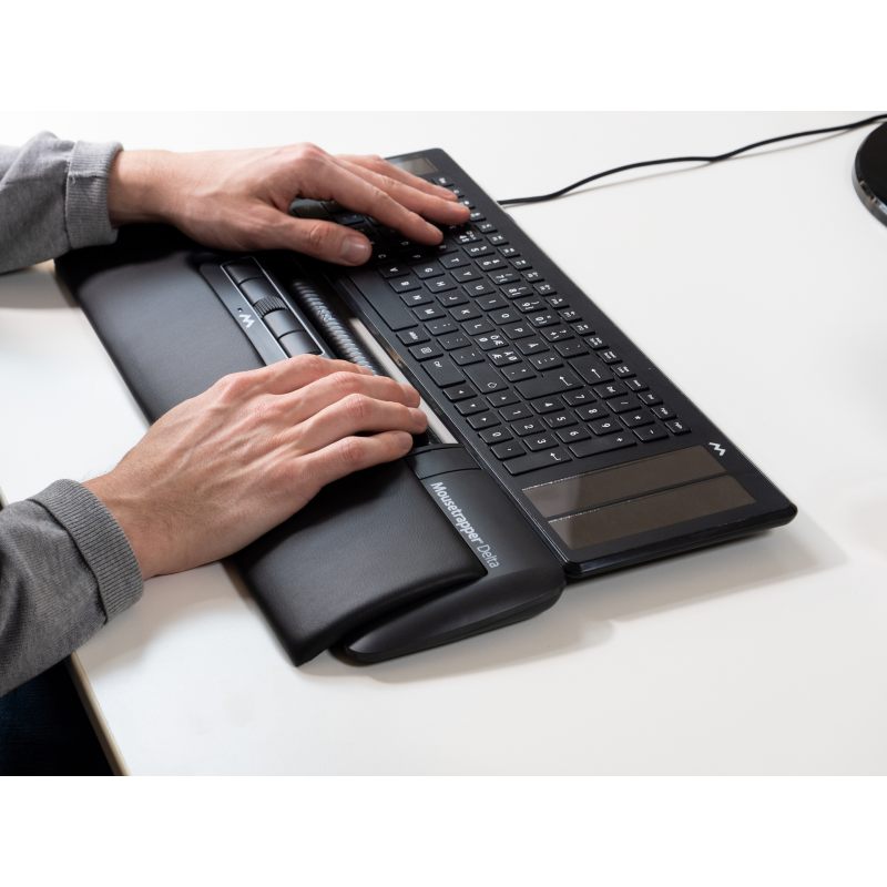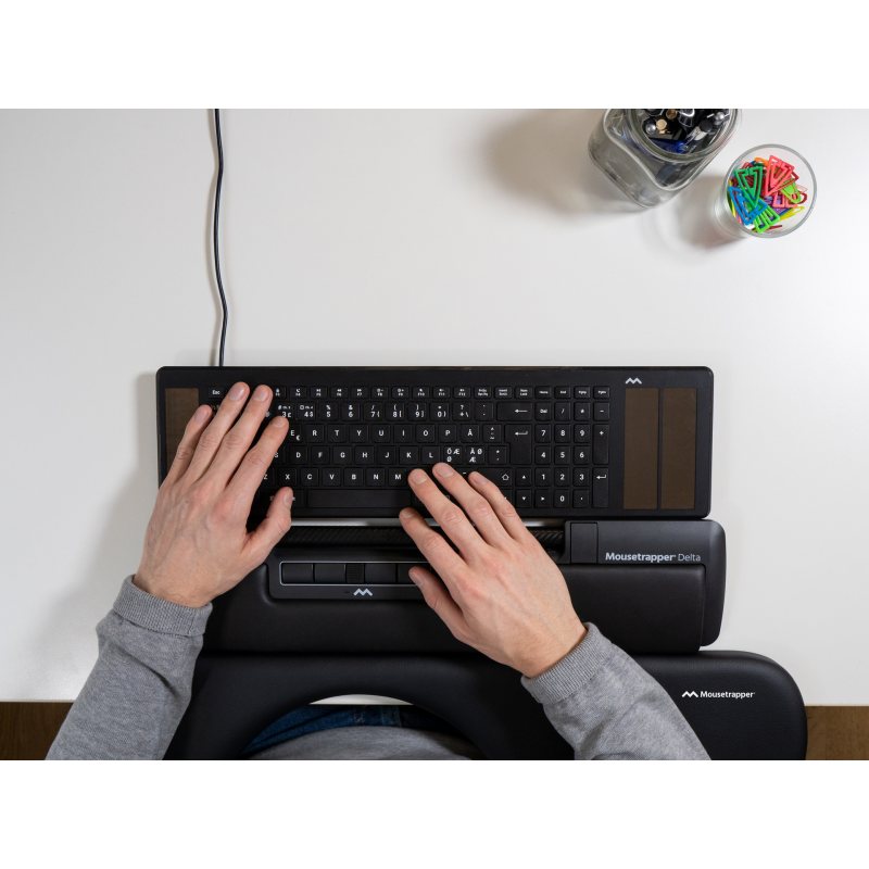 Delta Regular har justerbar friktions-/højdepude til tastaturet samt 2 USB-porte til opladning af enheder. Med præcise 4000 dpi er denne Mousetrapper rullestav et kompakt og ergonomisk alternativ til traditionel mus – perfekt for dem, der ønsker høj komfort uden ekstra pladsbehov, og et godt valg for alle, der overvejer en Mousetrapper Rollermouse.