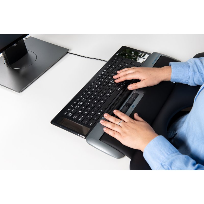 Den brede 255 mm Control Bar med klik- og scrollfunktion giver en naturlig og skånsom arbejdsstilling, og den kan flyttes 125 mm sidelæns for optimal komfort.