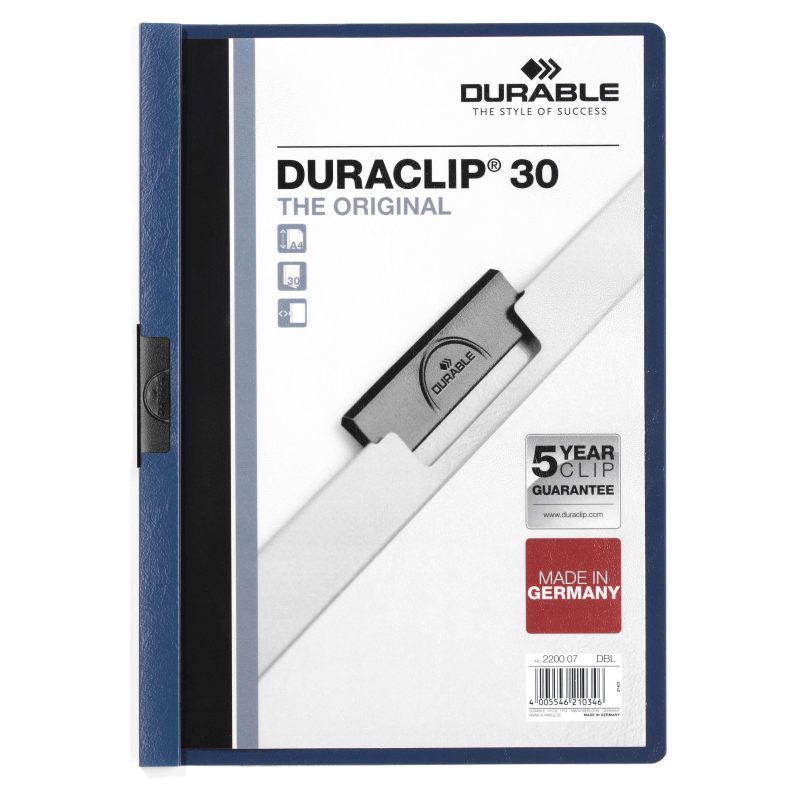 Durable Duraclip 30 Klemmappe A4 - til 30 Ark - mørkblå bagside