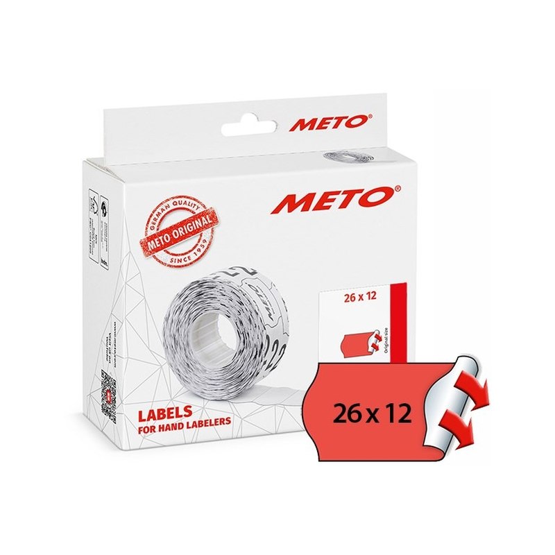 Etiketterne kan også anvendes i METO ProLine, Arrow, Flash med etiketstørrelse 26 x 12 mm. Etiketternes høje kvalitet gør, at de problemfrit kan dispenseres i prismærkepistolen i høj hastighed.