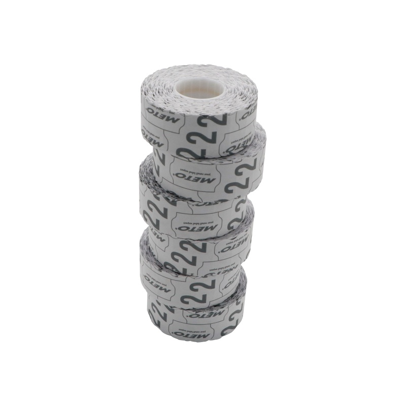 Etiketterne kan også anvendes i METO ProLine, Arrow, Flash med etiketstørrelse 26 x 12 mm. Etiketternes høje kvalitet gør, at de problemfrit kan dispenseres i prismærkepistolen i høj hastighed.