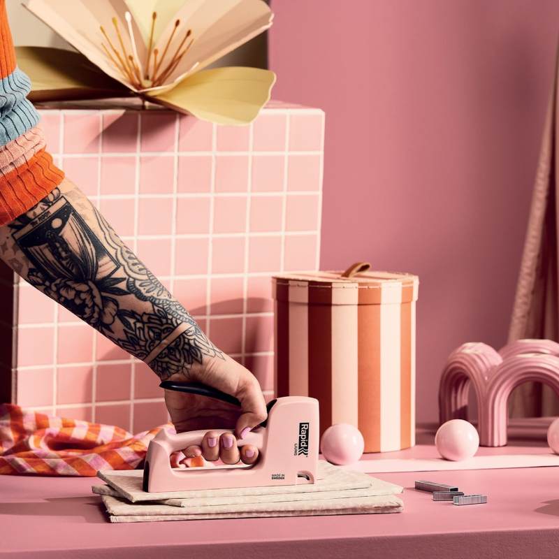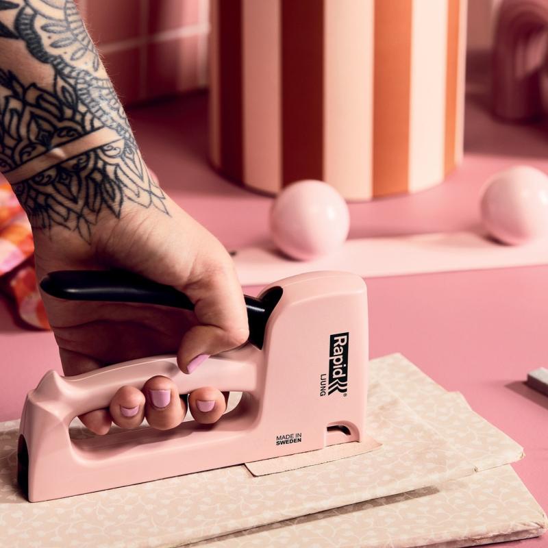 Denne pink hæftepistol er fremstillet i Sverige og produceret af mindst 90 % genanvendt materiale. Kabinettet i slagfast plast kombineret med indvendige sliddele i hærdet stål sikrer lang holdbarhed.