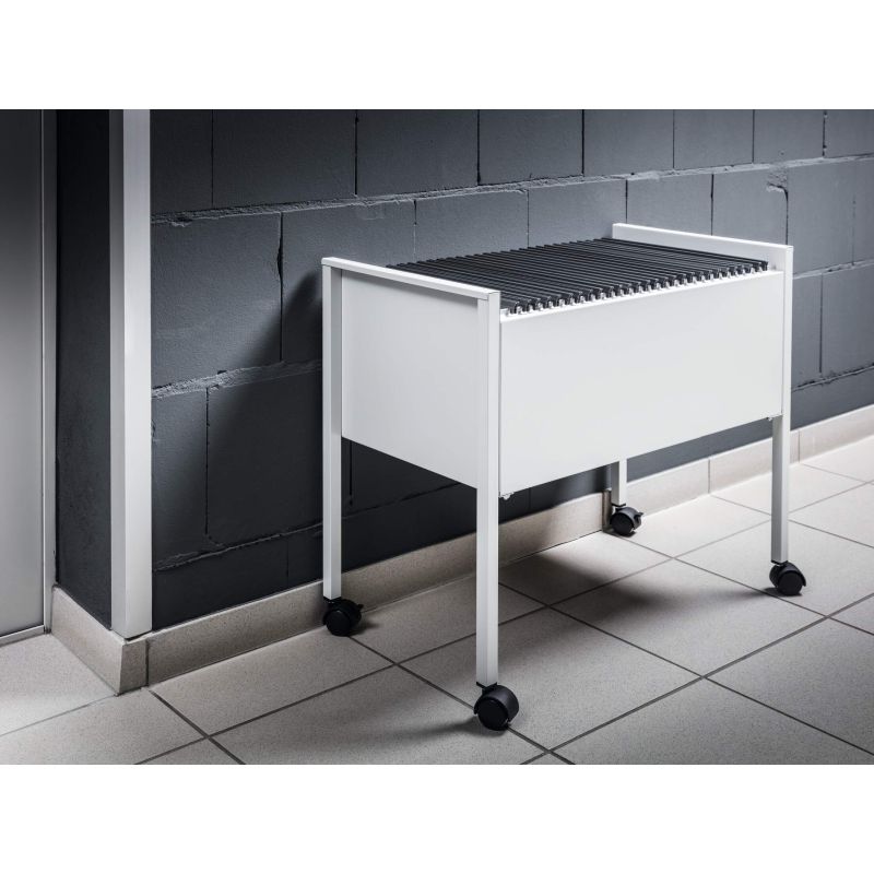 De fire hjul gør hængemappevognen ekstra mobil, og med to hjul med bremse står den stabilt, når du ønsker, at den skal være stationær. Det betyder, at du kan skubbe din hængemappestativ derhen, hvor du har brug for den, og samtidig være sikker på, at den står fast, når du arbejder ved den.