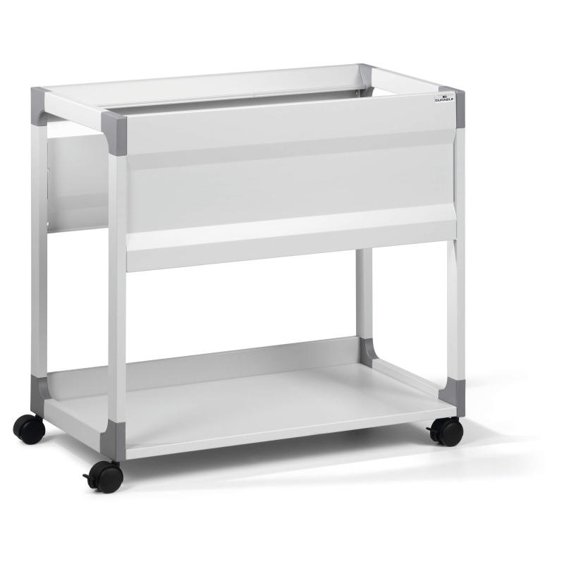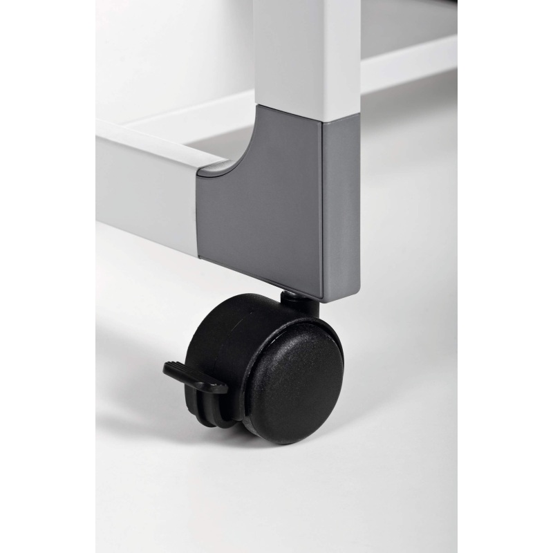 Den mobile funktionalitet sikres af fire solide hjul, hvoraf to er udstyret med bremse, så vognen både er let at flytte rundt og stabil, når den er i brug. Vognen er desuden fremstillet med op til 55 % genanvendt materiale, hvilket gør den til et mere bæredygtigt valg.