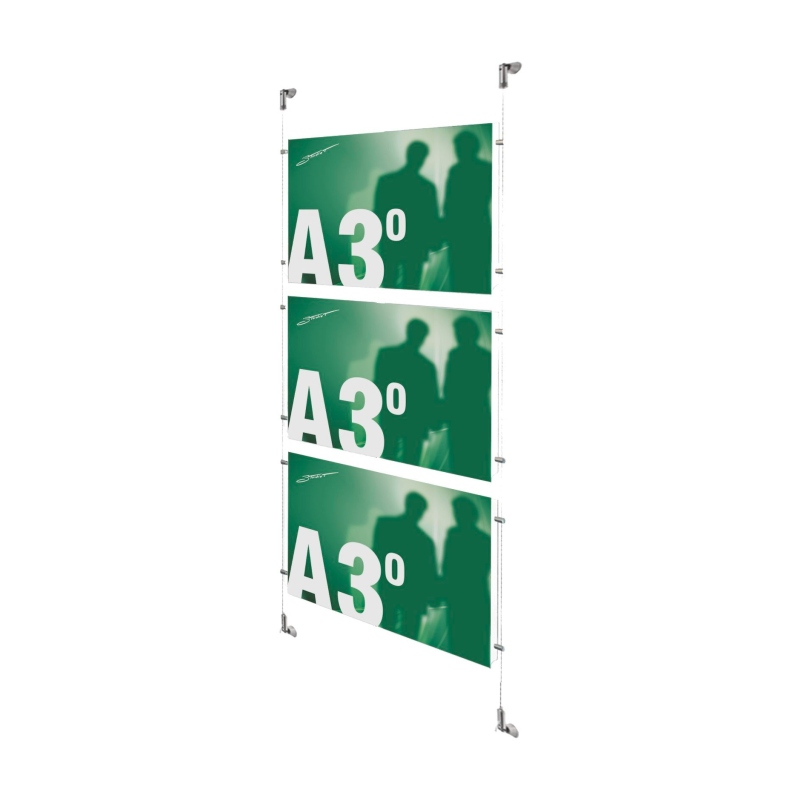 Det robuste wire-system i stål giver et moderne udtryk og holder displayet stramt og professionelt. Alle lommer er fremstillet i 2 mm ridsefast akryl, der fremstår let og eksklusivt i vinduet.