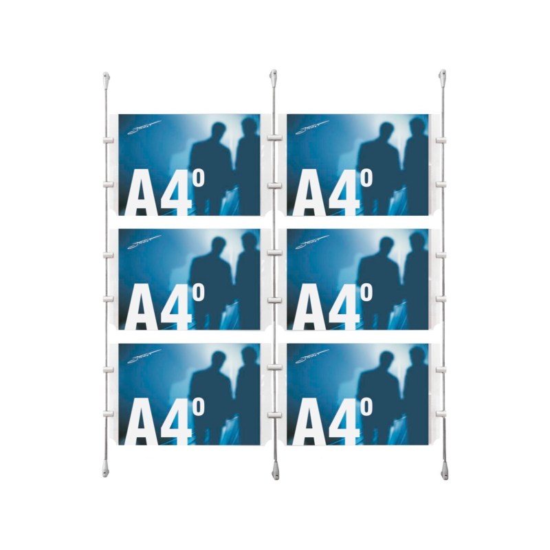 Det robuste wire-system i stål giver et moderne udtryk og holder displayet stramt og professionelt. Alle lommer er fremstillet i 2 mm ridsefast akryl, der fremstår let og eksklusivt i vinduet.