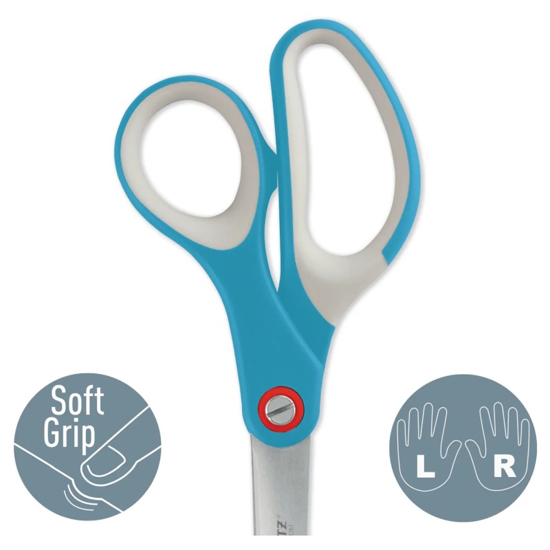 Leitz Cosy kontorsaks kombinerer stilfuldt design med professionel funktionalitet, perfekt til både kontor og hjem. De ultraskarpe titaniumbelagte blade i tysk rustfrit stål sikrer præcis og jævn klipning af papir, karton og andre lette materialer – en papirsaks, du kan stole på år efter år. Det ergonomiske softgrip-håndtag i blødt TPR-materiale giver et komfortabelt og skridsikkert greb, mens den justerbare skrue sikrer optimal kontrol og glidende bevægelse.
