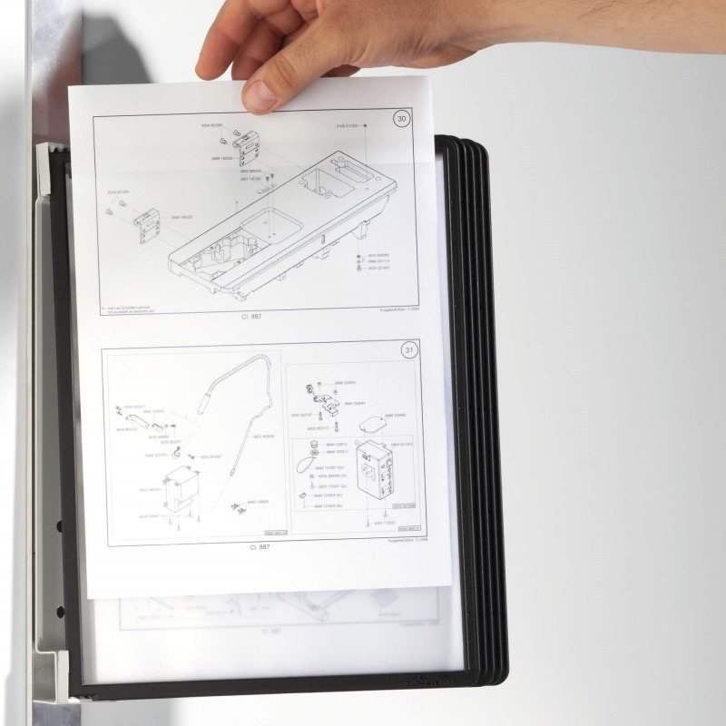 Et registersystem er den ideelle løsning, når information skal præsenteres professionelt og være let tilgængelig. Med Durable Vario Magnetisk Wall 5 får du et kompakt og pladsbesparende registersystem vægmodel, der er særligt udviklet til montering på metaloverflader. Det magnetiske beslag gør det muligt at sætte systemet direkte på skabe, reoler, maskiner eller whiteboards – helt uden skruer eller værktøj.