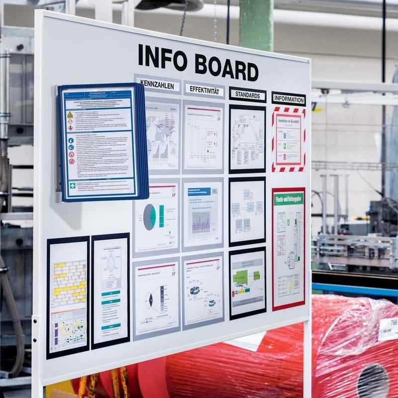 Denne fleksibilitet gør det magnetiske registersystem perfekt til områder, hvor dokumenter ofte skal flyttes eller opdateres. På lageret kan det bruges til oversigter og sikkerhedsinstruktioner, i produktionen til arbejdsprocedurer ved maskinerne, og på magnetiske whiteboards, kontoret eller i receptionen til prislister, vejledninger eller andre oplysninger, der skal være synlige for medarbejdere og besøgende.
