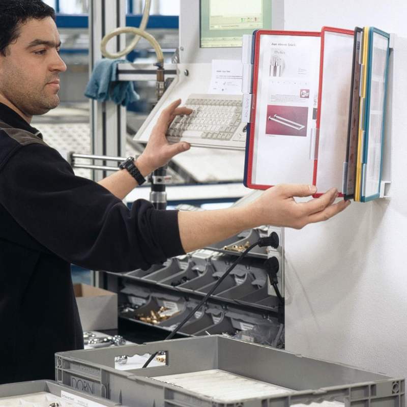 Et registersystem er den ideelle løsning, når dokumenter skal præsenteres professionelt og være nemt tilgængelige for medarbejdere og kunder. Med Durable Vario Wall 10 får du et pladsbesparende og funktionelt registersystem til væg, der leveres komplet med 10 Sherpa-registerlommer i A4-format. Perfekt til organisering af prislister, sikkerhedsinstruktioner, procedurer eller anden information, der skal kunne tilgås hurtigt.