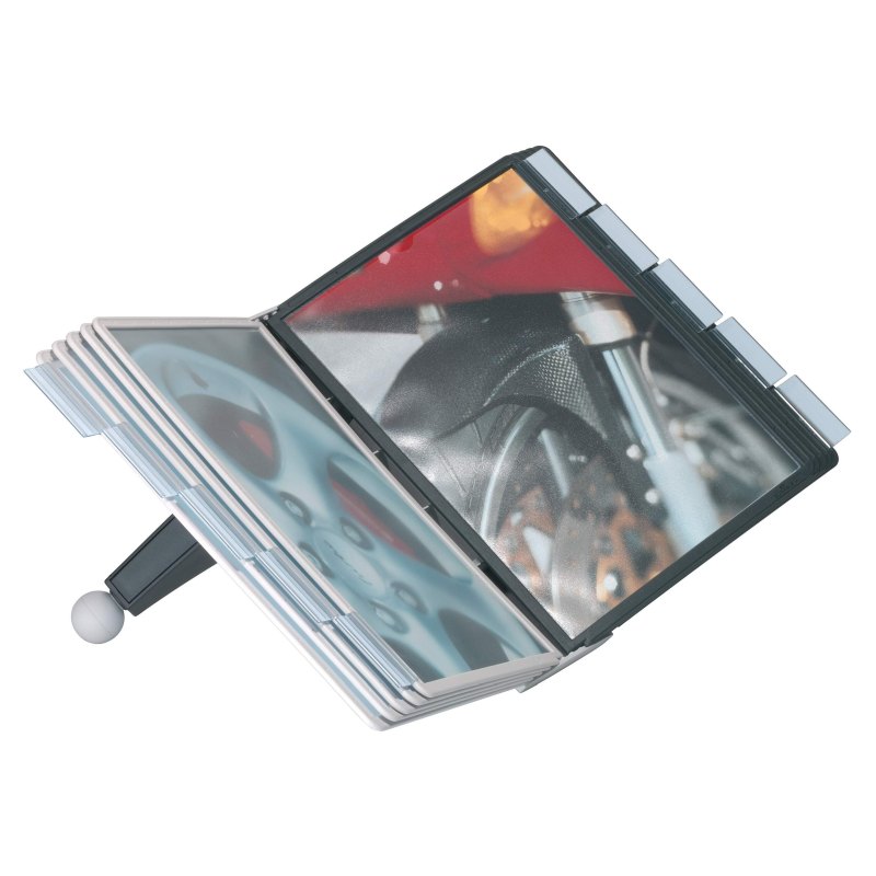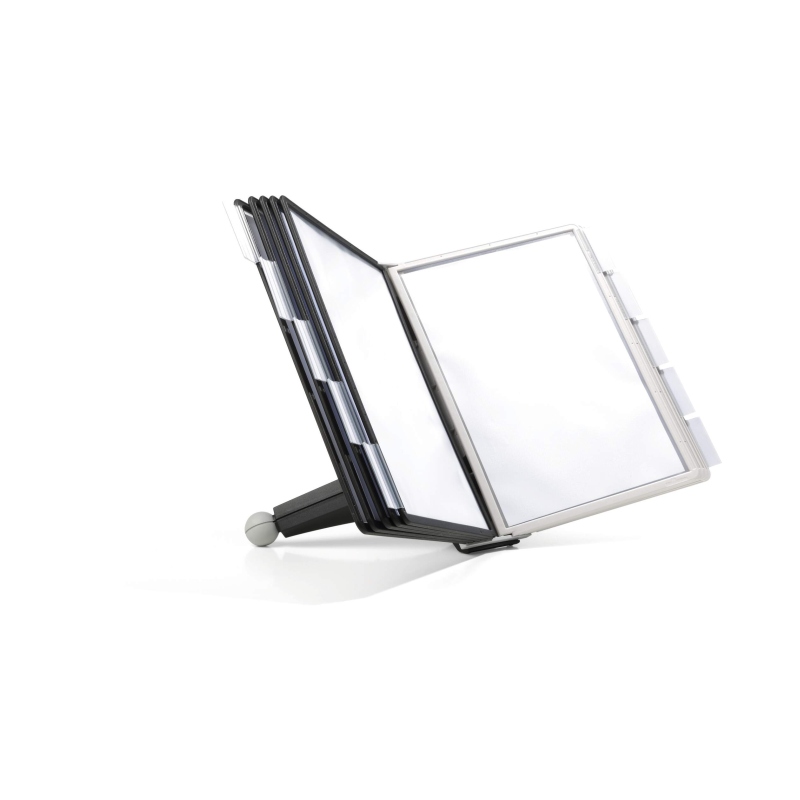 Durable Sherpa Table er et professionelt og stabilt registersystem til bord, udviklet til at gøre organisering og præsentation af information både enkel og overskuelig. Denne komplette løsning leveres med 10 A4 registerlommer i slidstærkt polypropylen, udstyret med farvede profilrammer og refleksionssvag folie, som sikrer optimal læsbarhed og gør dem velegnede til scannere. Dokumenter indsættes nemt via topåbning, mens faner med blanke indstik giver mulighed for tydelig markering og struktur.