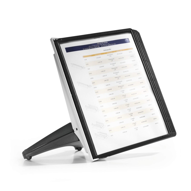 Durable Sherpa Table Soho er et pladsbesparende og funktionelt registersystem bordmodel, der giver en nem og overskuelig måde at organisere vigtige dokumenter på. Denne bordregistersystem løsning leveres med 5 A4 registerlommer i slidstærkt polypropylen med farvede profilrammer og refleksionssvag folie, som sikrer høj læsbarhed og gør dem ideelle til brug med scannere.