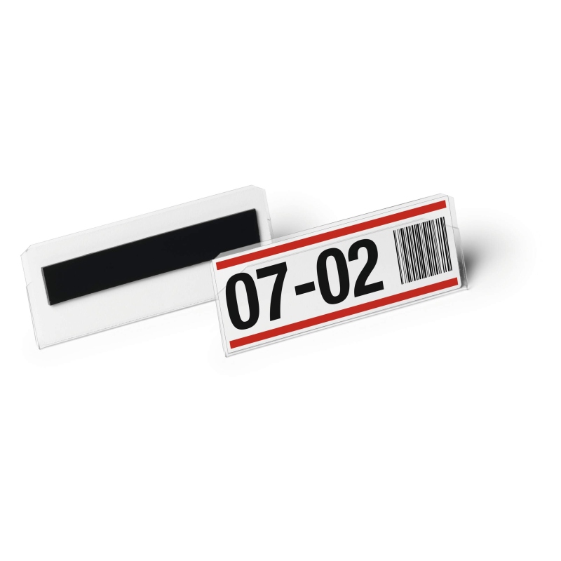 Disse Durable lagerlommer magnetiske er perfekte til erhverv, industri og logistik, hvor tydelig mærkning af magnetiske hyldeforkanter og effektiv organisering af lagerlommer er vigtig. Hver lagerlomme er fremstillet i robust PET-plast med transparent forside, der beskytter etiketter, dokumenter og følgesedler mod støv, snavs og fugt, samtidig med at indholdet altid er synligt. Bagsiden er udstyret med stærke magneter, som gør det nemt at montere lommen på metalhylder, skabe eller beholdere, uden brug af lim.