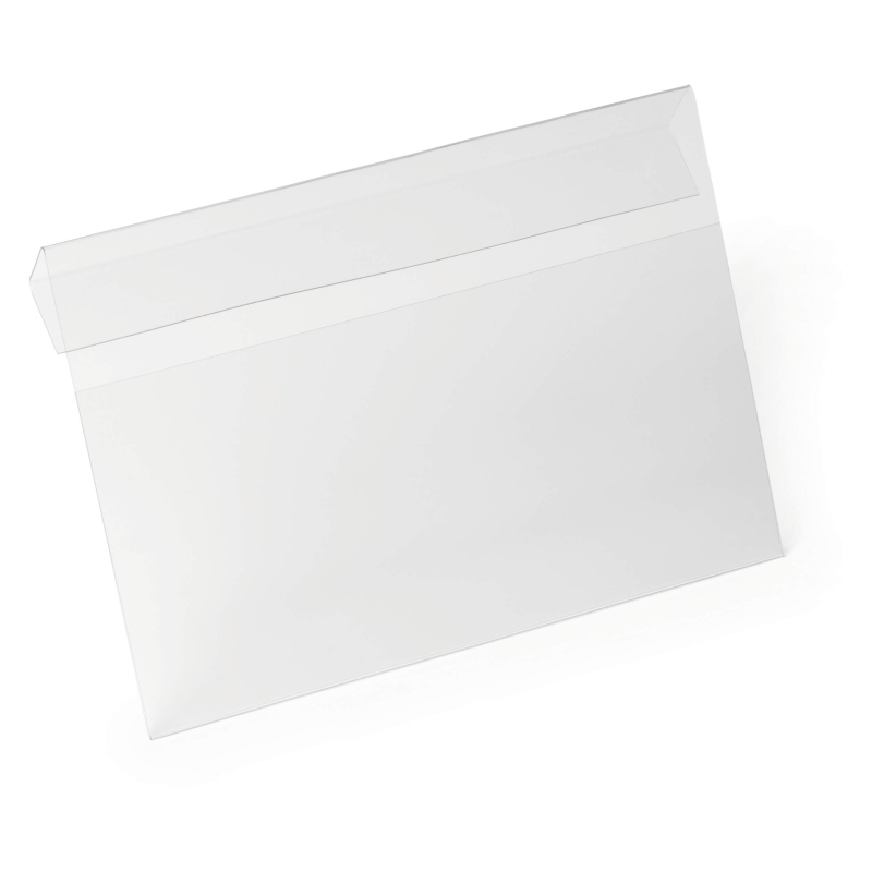Denne Durable lagerlomme med fals er udviklet til professionelle lagermiljøer, hvor tydelig mærkning af hyldeforkanter med fals og optimal organisering af lagerlommer er vigtig. Lommen er fremstillet i transparent PET-plast, som sikrer fuld synlighed og beskytter etiketter, følgesedler og dokumenter mod støv og snavs.