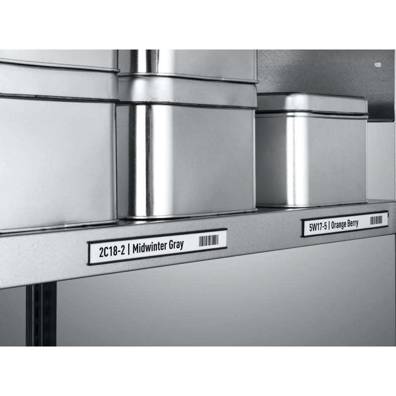 Leveres i bulk pakker á 50 stk. og giver en professionel løsning til tydelig og fleksibel mærkning af hyldeforkanter og lagerpladser.
