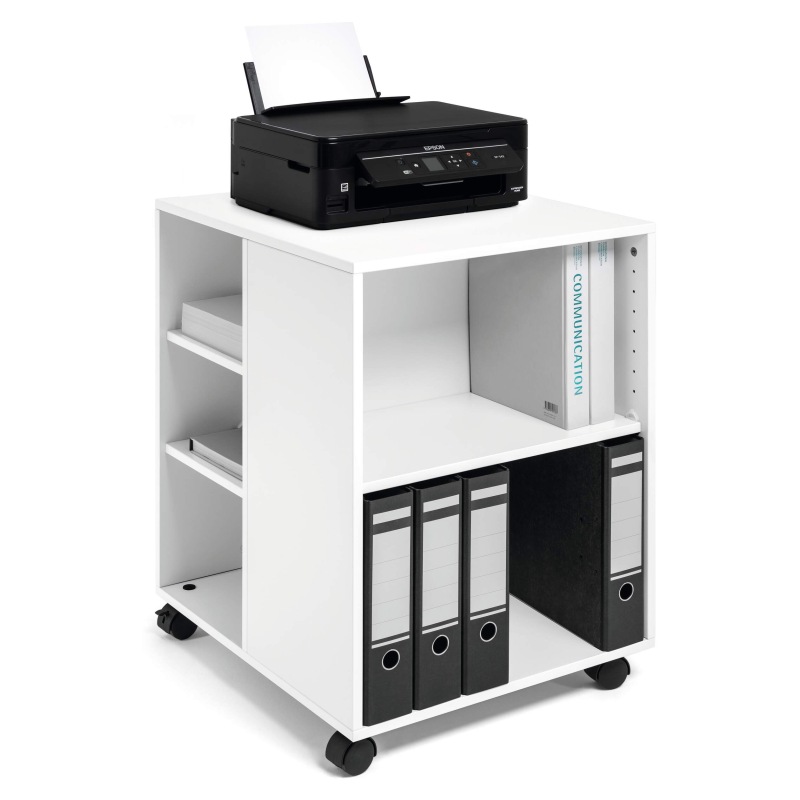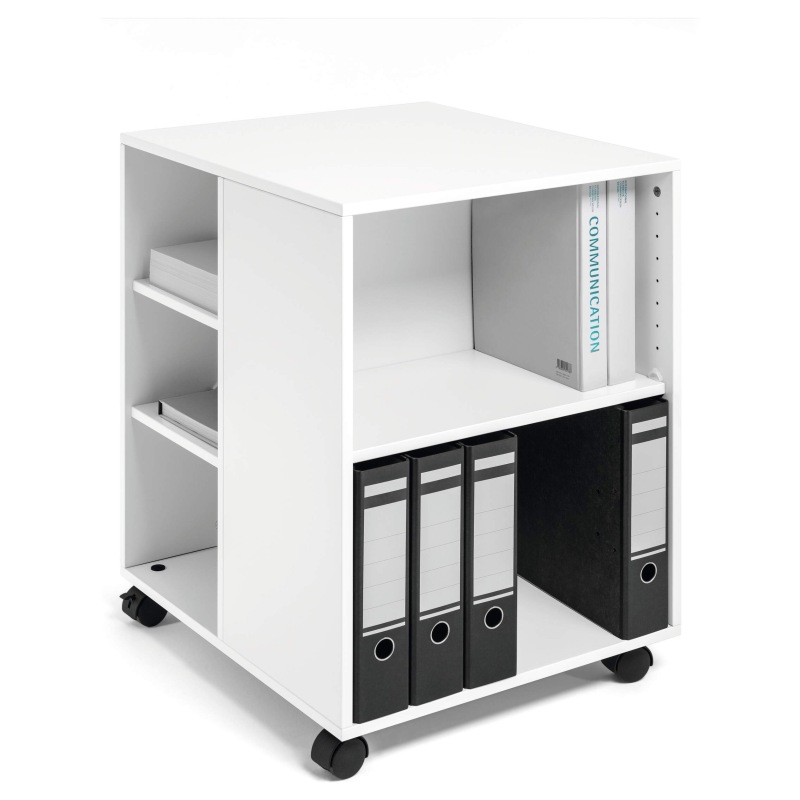 Med fire hjul, hvoraf to har bremse, kan dette kontorskab på hjul nemt flyttes rundt på kontoret, samtidig med at det står stabilt, når det er i brug. Den åbne konstruktion med åbninger på tre sider giver hurtig adgang til indholdet og gør det muligt at organisere både papir, brevordnere og elektronisk udstyr effektivt.