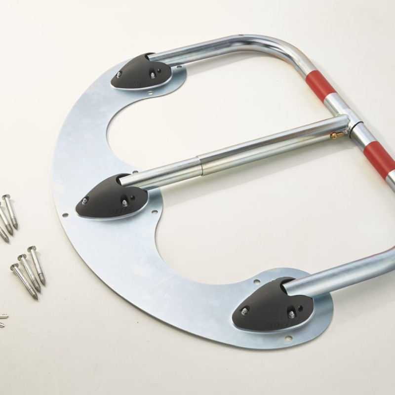 Mottez parkeringsbøjle B301CCI er en stærk og pålidelig løsning til effektiv afspærring af parkeringsplads. Denne holdbare parkeringsbøjle er fremstillet i zinkbelagt, rustbeskyttet stål (Ø45/Ø50 mm) og monteret på en kraftig resin-base, som kan modstå op til 5 tons tryk. Den kurvede form gør bøjlen stabil på ujævne underlag og beskytter samtidig mod stød og slag.