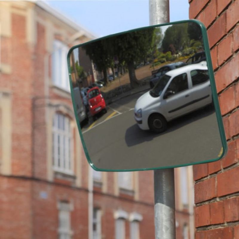 Sikkerhedsspejl med ubrydelig polypropylenramme og spejl i glas