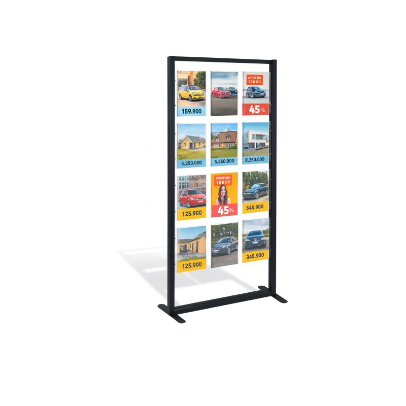Dette professionelle ramme display er et komplet og fleksibelt mægler ramme system, perfekt til butikker, agenturer, kontorer, skoler og andre erhvervsmiljøer, der ønsker synlige og moderne messedisplays eller vinduesdisplays.