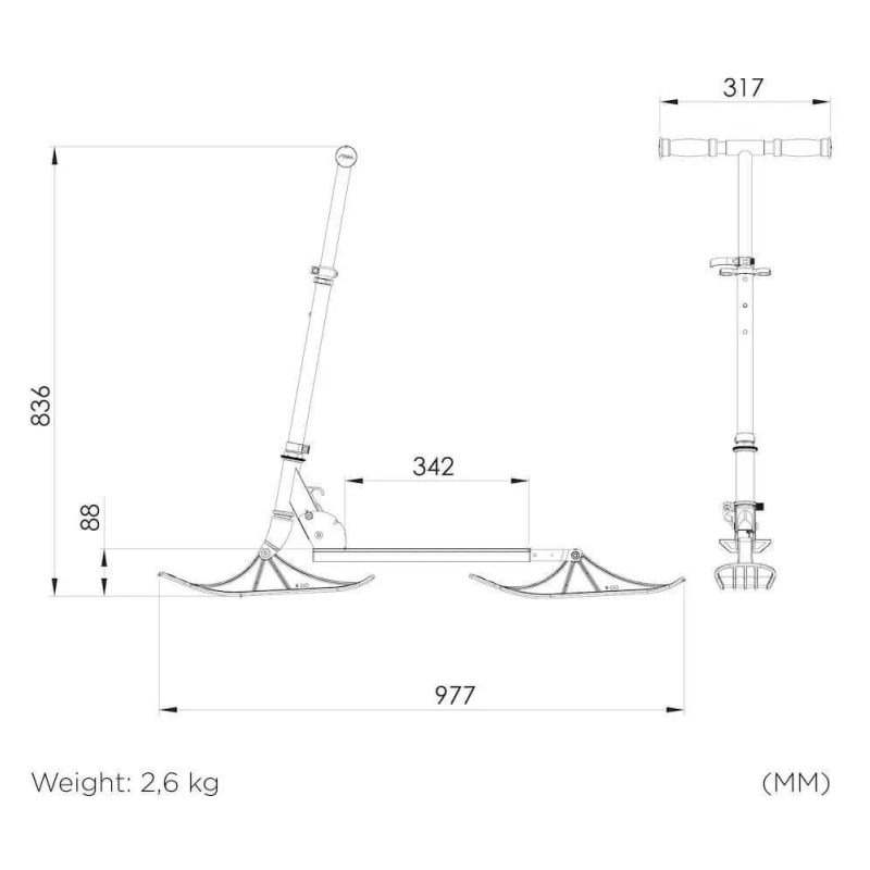Rammen er fremstillet i en let, men robust kombination af aluminium og stål, som gør sne-løbehjulet nemt at styre og holdbart i brug. De originale STIGA-ski i HDPE med Curve Ski System sikrer god kontrol og høj køreglæde.