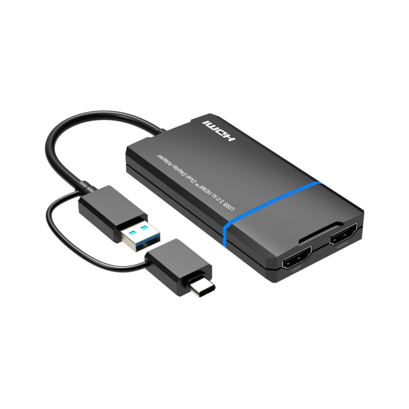MicroConnect HDMI Adapter USB-C or USB A 2in1 to HDMI 2x splitter, with one click