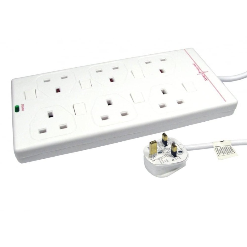 MicroConnect strømskinne 6-vejs UK stikkontakt 2M - hvid