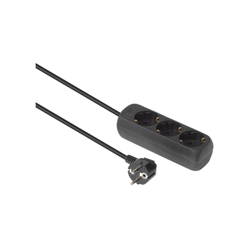 MicroConnect strømskinne 3-vejs Schuko stikkontakt 1,5M - sort uden tænd/sluk-knap - med børnesikre
