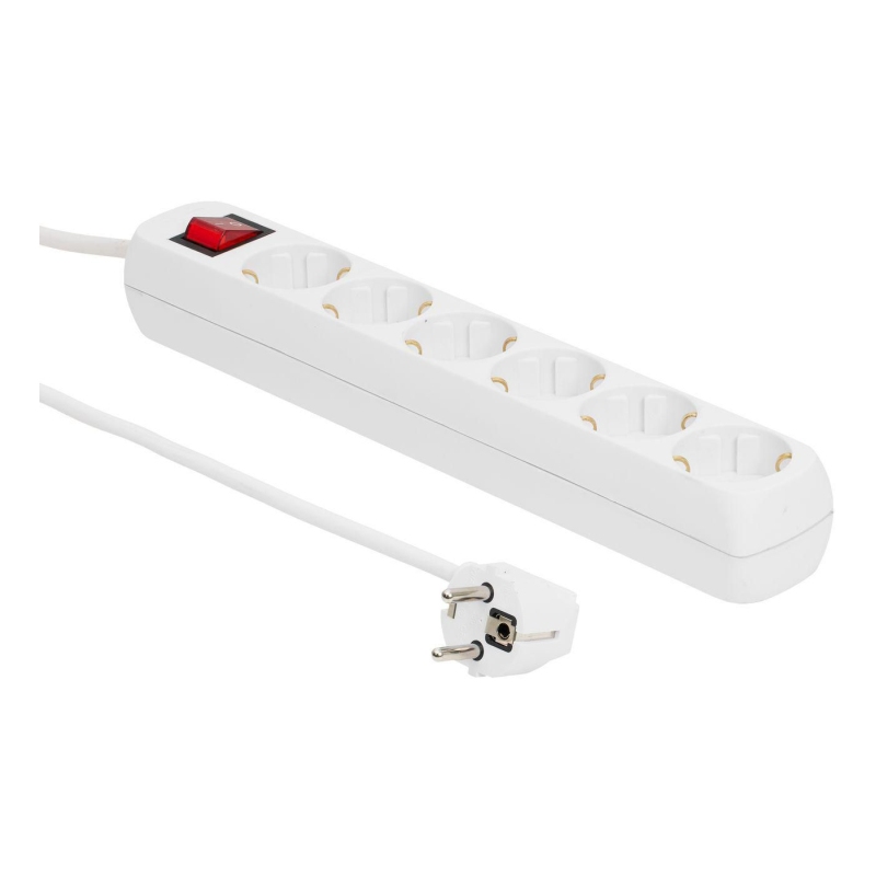 MicroConnect strømskinne 6-vejs Schuko stikkontakt 1,8M - hvid med tænd/sluk-knap og børnesikring