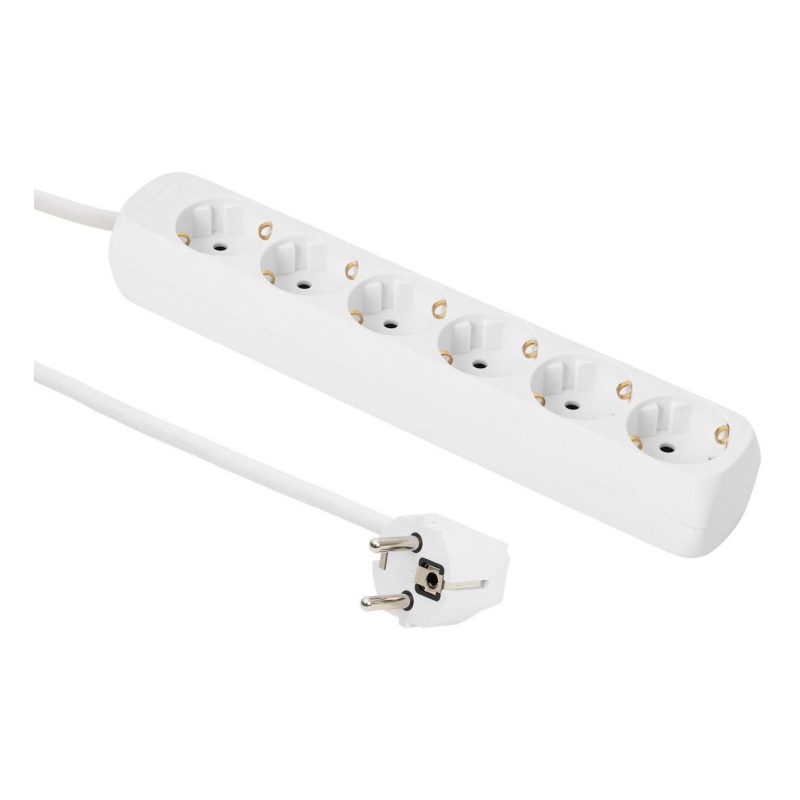 MicroConnect strømskinne 6-vejs Schuko stikkontakt 5M - hvid