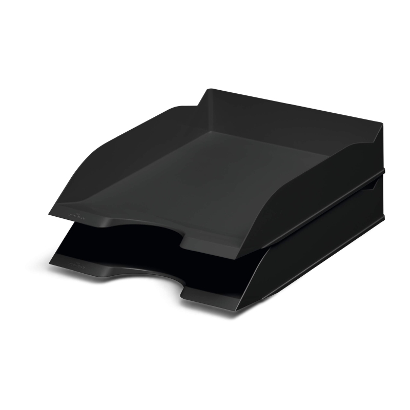 Brevbakker til skrivebord fra Durable kan stables lodret eller placeres side om side, hvilket giver fleksible muligheder for organisering og skaber et ryddeligt og effektivt arbejdsmiljø. Med sit klassiske, sorte design passer denne brevbakke ind i ethvert professionelt kontormiljø.