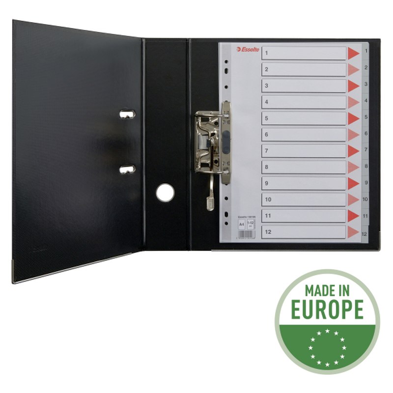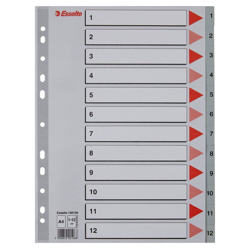 Esselte A4 Register - Kraftig pp - 1-12 - med pile-design - grå