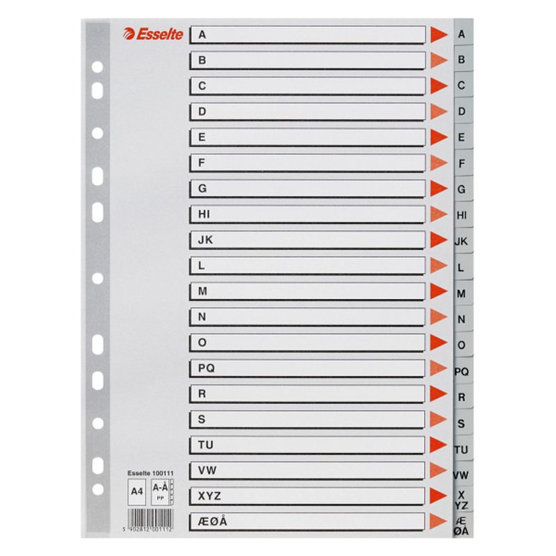 Esselte A4 Register - Kraftig pp - A-Å - grå
