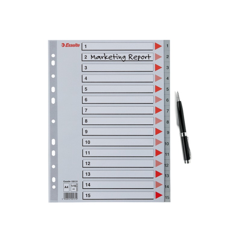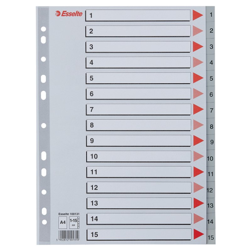Esselte A4 Register - Kraftig pp - 1-15 - med pile-design - grå