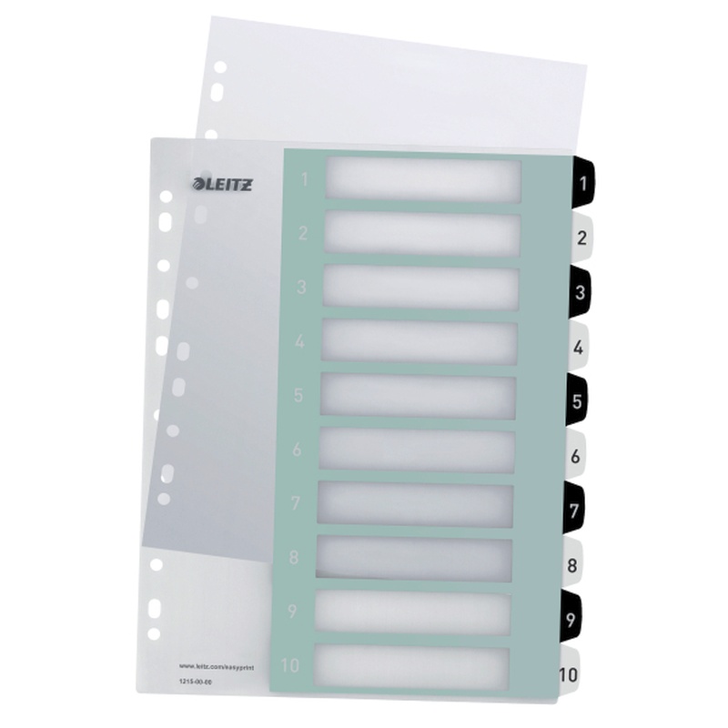 Leitz A4+ Register - printbar - PP - 1-10 - hvid/sort